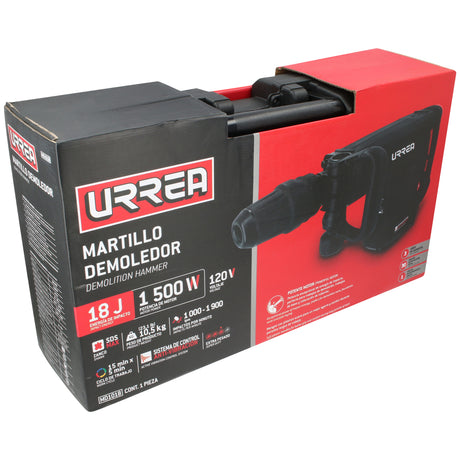 MARTILLO DEMOLEDOR CON CONTROL ANTIVIBRACIÓN, SDS MAX 1500W, 120V, 18J, 1000 - 1900 IPM URREA