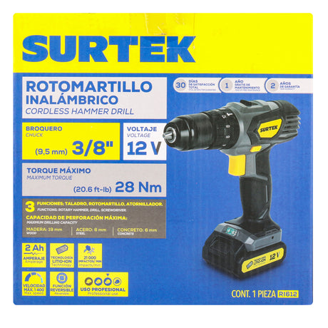 ROTOMARTILLO DE IMP 3/8" A BATERÍA LITIO-ION 12 V 28 NM SURTEK