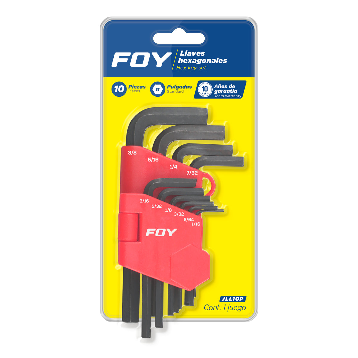 JUEGO DE LLAVES HEXAGONALES TIPO "L", EN PULGADAS, 10 PIEZAS EN RACK FOY