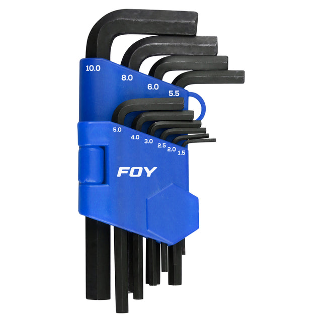JUEGO DE LLAVES HEXAGONALES TIPO "L", MÉTRICAS, 10 PIEZAS EN RACK FOY