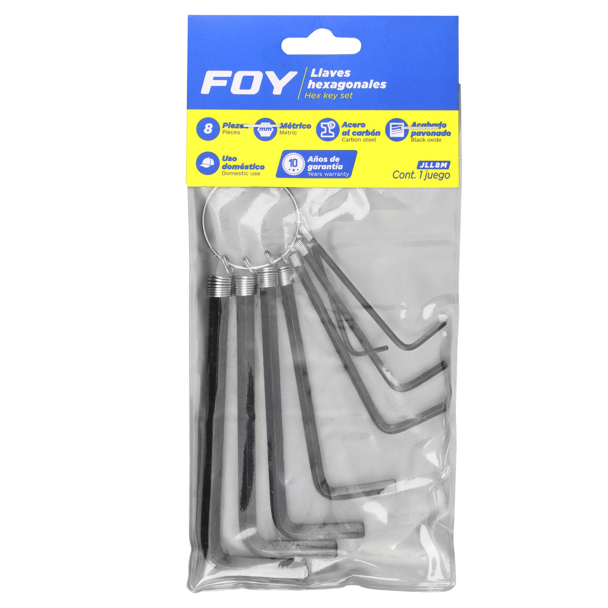JUEGO DE LLAVES HEXAGONALES TIPO "L", MÉTRICAS, 8 PIEZAS EN ARGOLLA FOY