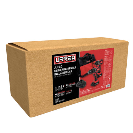 JUEGO DE ROTOMARTILLO Y PISTOLA DE IMPACTO A BATERÍA LI-ION 20 V, 2 PIEZAS EN MOCHILA URREA