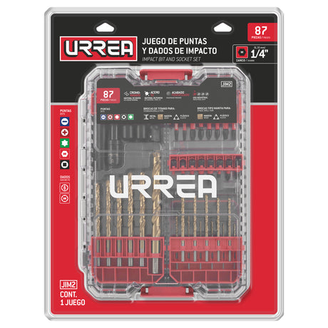 JUEGO DE PUNTAS Y DADOS DE IMPACTO, 87 PIEZAS URREA