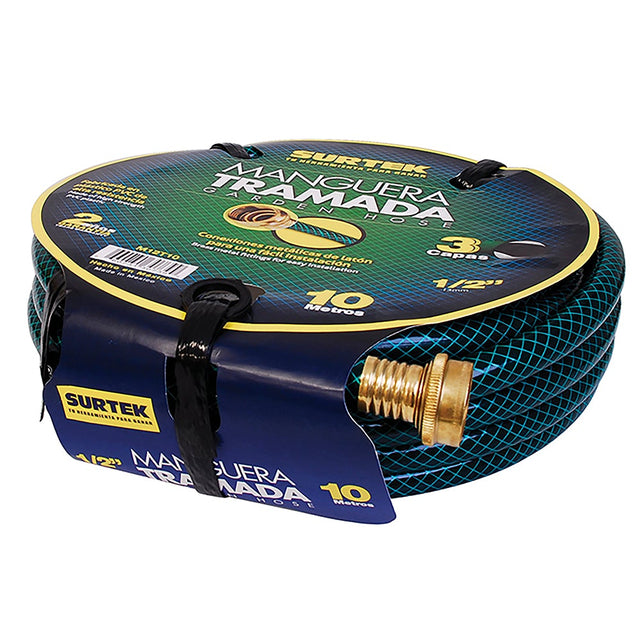 MANGUERA PARA JARDÍN TRAMADA EN ROLLO VERDE 5/8", 25 M SURTEK