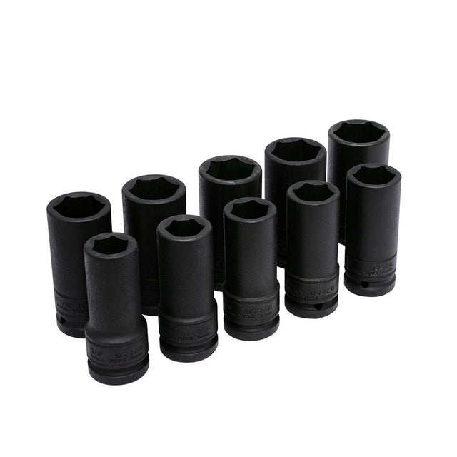 JUEGO DE 10 DADOS LARGOS DE IMPACTO PARED DELGADA EN PULGADAS CUADRO DE 3/4", 6 PUNTAS URREA
