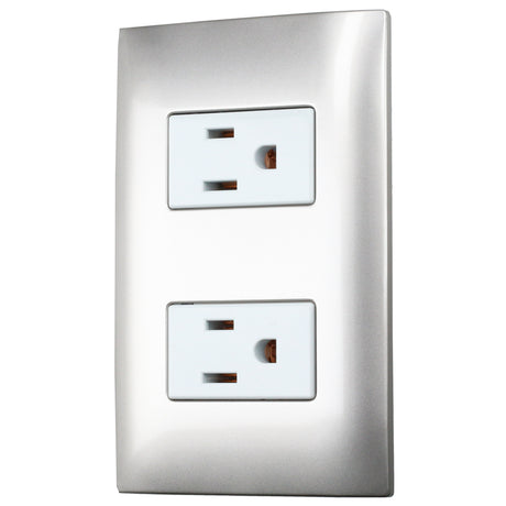 PLACA 1 CONTACTO DÚPLEX 1/3, LÍNEA AMERICANA, COLOR PLATA SURTEK
