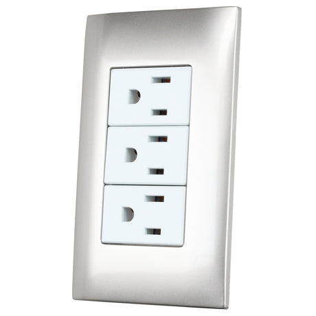 PLACA 3 CONTACTOS 1/3, LÍNEA AMERICANA, COLOR PLATA SURTEK