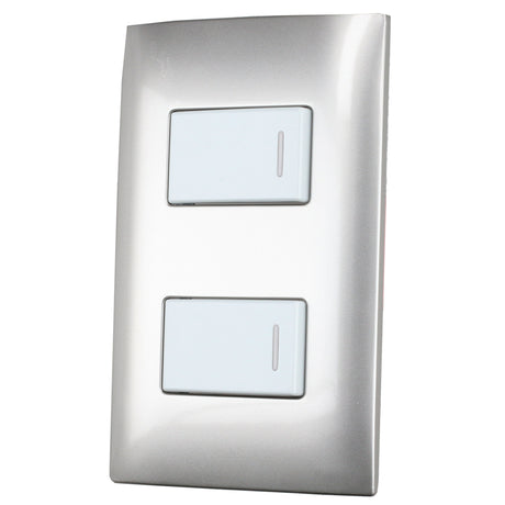 PLACA 2 INTERRUPTOR 1/3, LÍNEA AMERICANA, COLOR PLATA SURTEK