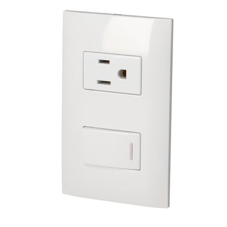 PLACA 1 SWITCH 1 CONTACTO 1/3, LÍNEA AMERICANA, COLOR BLANCO SURTEK