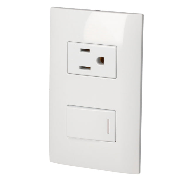 PLACA 1 SWITCH 1 CONTACTO 1/3, LÍNEA AMERICANA, COLOR BLANCO SURTEK