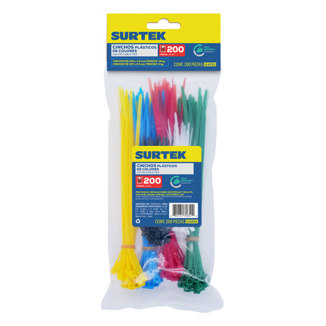 CINCHOS DE PLÁSTICOS COMBINADOS EN BOLSA, TENSIÓN 8 KG Y 18 KG DE 200 PIEZAS, VARIOS SURTEK
