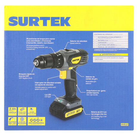 TALADRO/ATORNILLADOR 3/8" BATERIA DE LI-ION 12 V SURTEK
